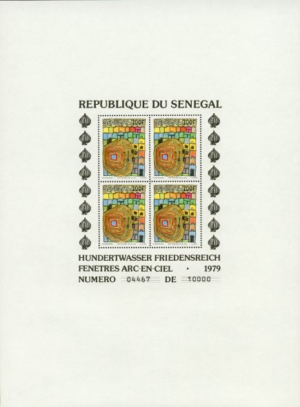 The Senegal stamps were issued in regular sheets for mailing, as well as these highly sought-after numbered souvenir sheets. Imperforate and unnumbered souvenir sheets also exist (but at some point, I need to turn my scanner off! ;-)).